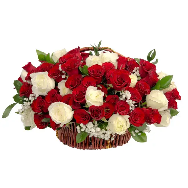 Red and ivory roses gathered in generous balance, finished with fresh greens. A refined expression of love and reassurance—crafted for moments that call for sincerity, not excess