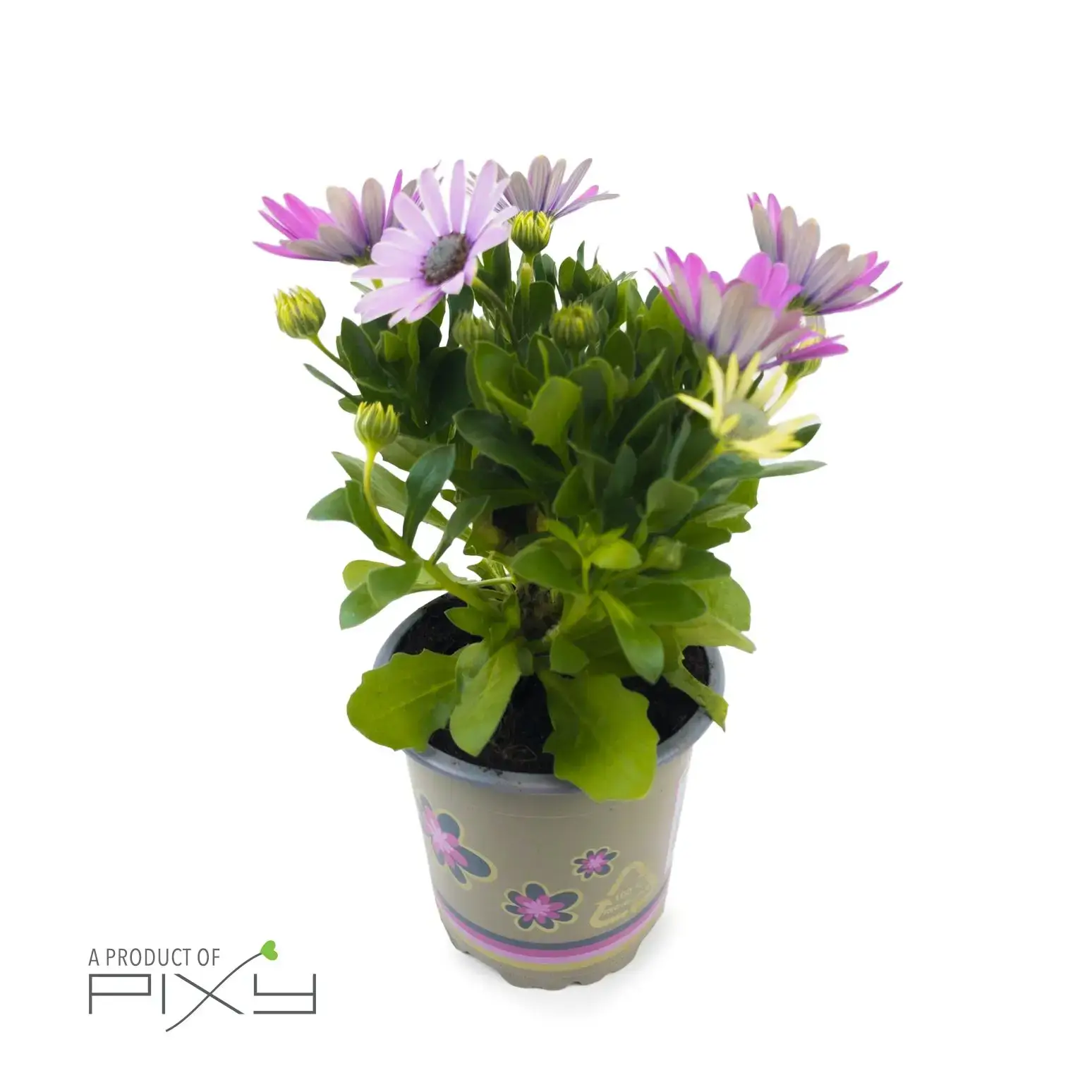 Osteospermum, also known as African daisy, is a perennial plant characterised by its spoon-shaped petals that come in various colours such as pink, purple, and white. It flourishes in direct sunlight and soil with good drainage, producing flowers from spring to autumn. This plant is well-suited for borders and containers, as it provides a durable burst of colour to any garden.