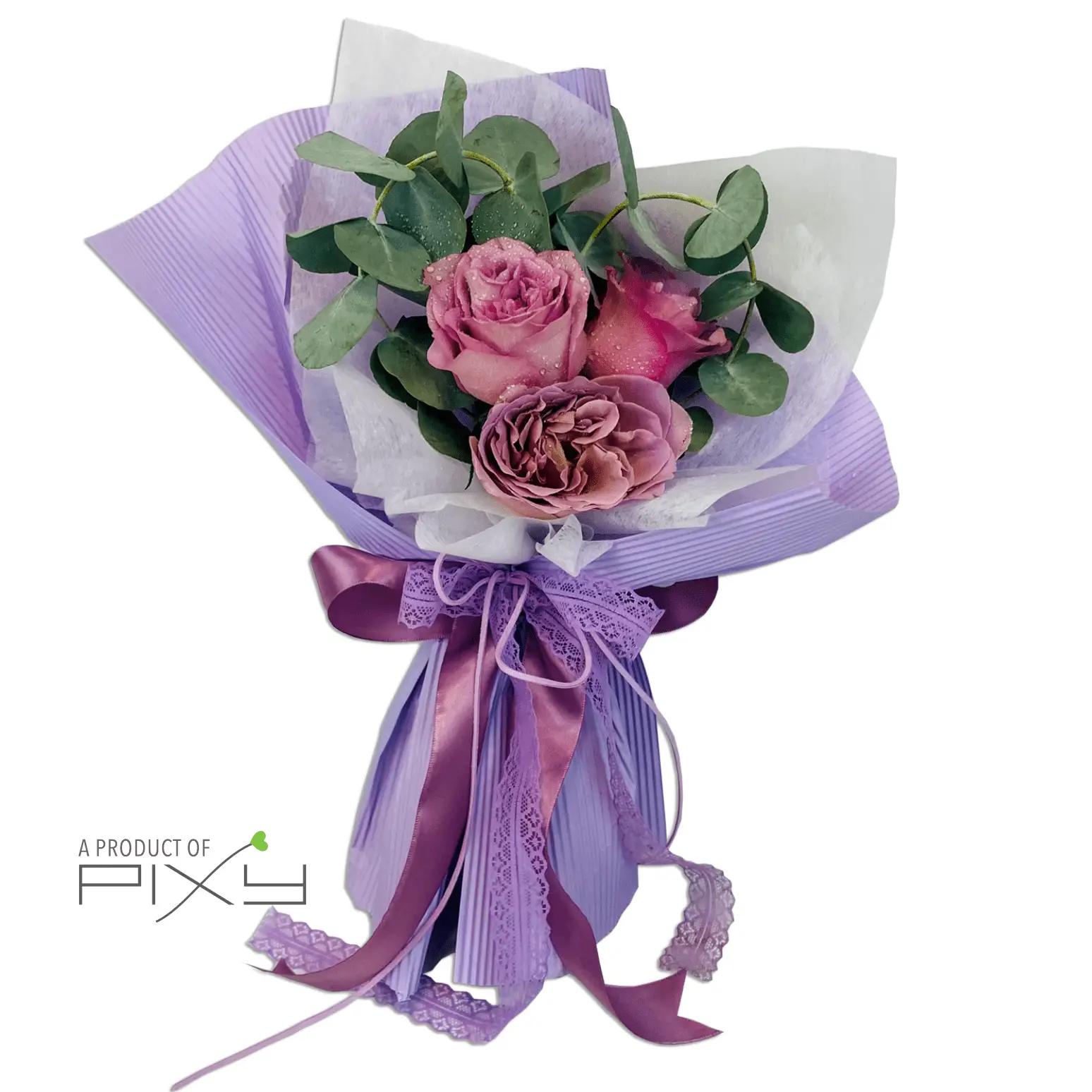 Enjoy the sensual fragrance of our lavender rose bouquet, which is tastefully encased in a regal purple. It’s a considerate present that shows grace and admiration and is ideal for any occasion. Place your order right away and let our flowers arouse your senses and seduce your heart.